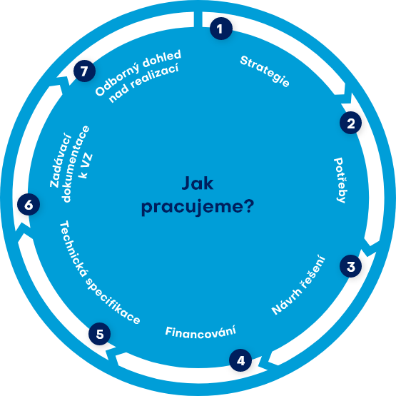 Stejně jako vy chceme, aby všechny kroky směřovaly k naplnění vašich cílů a měli pro vás dlouhodobou přidanou hodnotu. Proto začínáme od vaší hlavní strategie, na základě které pomáháme vytvářet IT strategii.